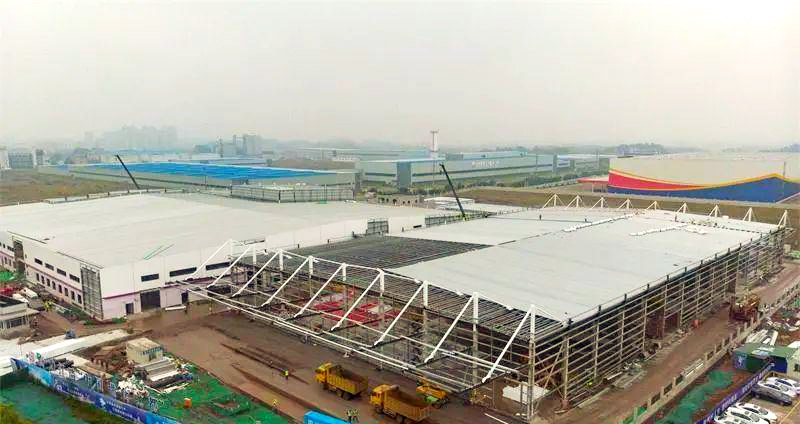 近日,四川內(nèi)江飲料生產(chǎn)基地廠房主體鋼構(gòu)已圓滿收工,目前正聚焦于外立面的施工細節(jié),同時展開倉庫屋頂頂棚鋼板的鋪設(shè)工作。